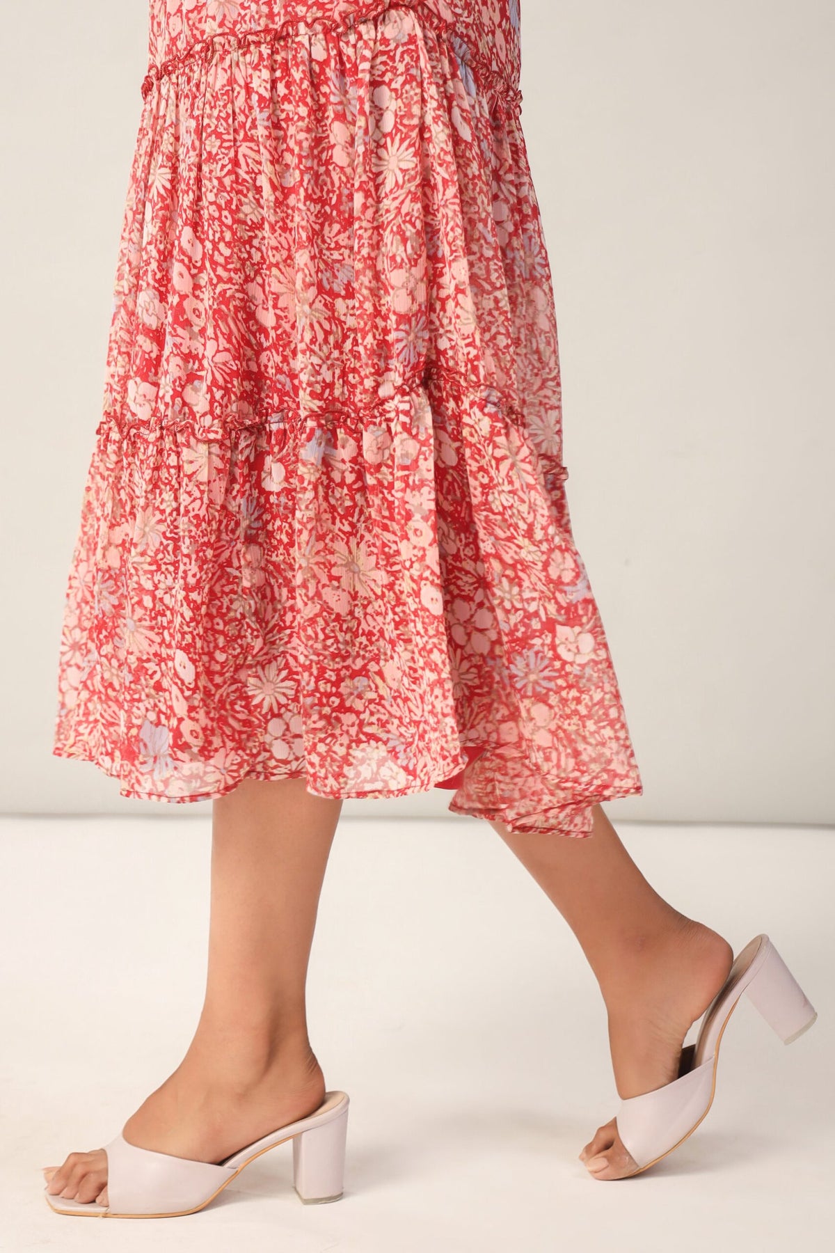 Red Floral Midi Dress for Women close up