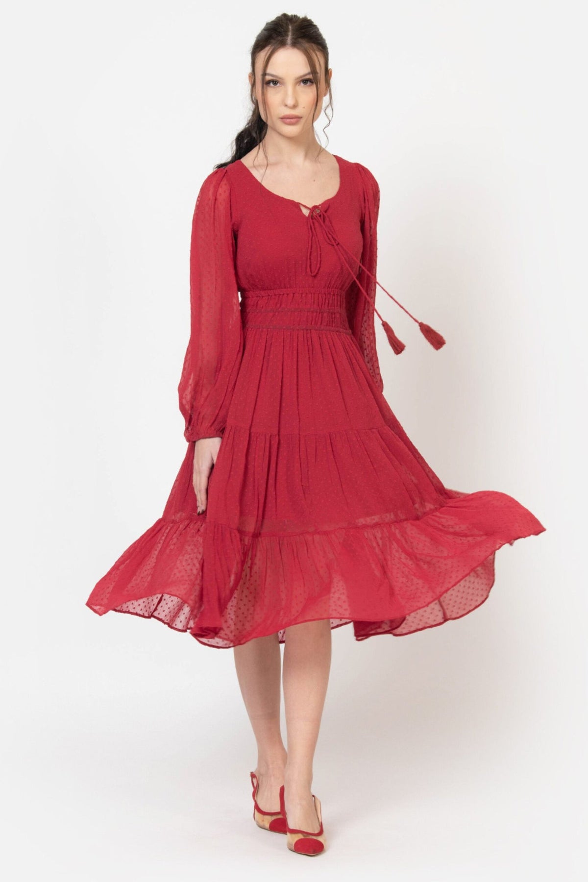 Step into effortless elegance with our Dobby Weave Midi Dress, designed to flatter your figure while keeping you comfortable. This dress cinches at the waist, accentuating your curves before flowing gracefully like a summer breeze. Crafted from soft, breathable fabric, this dress feels luxurious against your skin, making it perfect for all-day wear. The midi dress length strikes the ideal balance between flirty and functional, ensuring versatility for any occasion. Featuring a textured Dobby weave, this dress adds a captivating visual appeal to your wardrobe. Style it with a denim jacket for a cool-girl vibe or let this dress shine on its own—either way, it’s a must-have fashion staple! Flowy and graceful, bishop sleeves add a touch of timeless elegance to any dress.