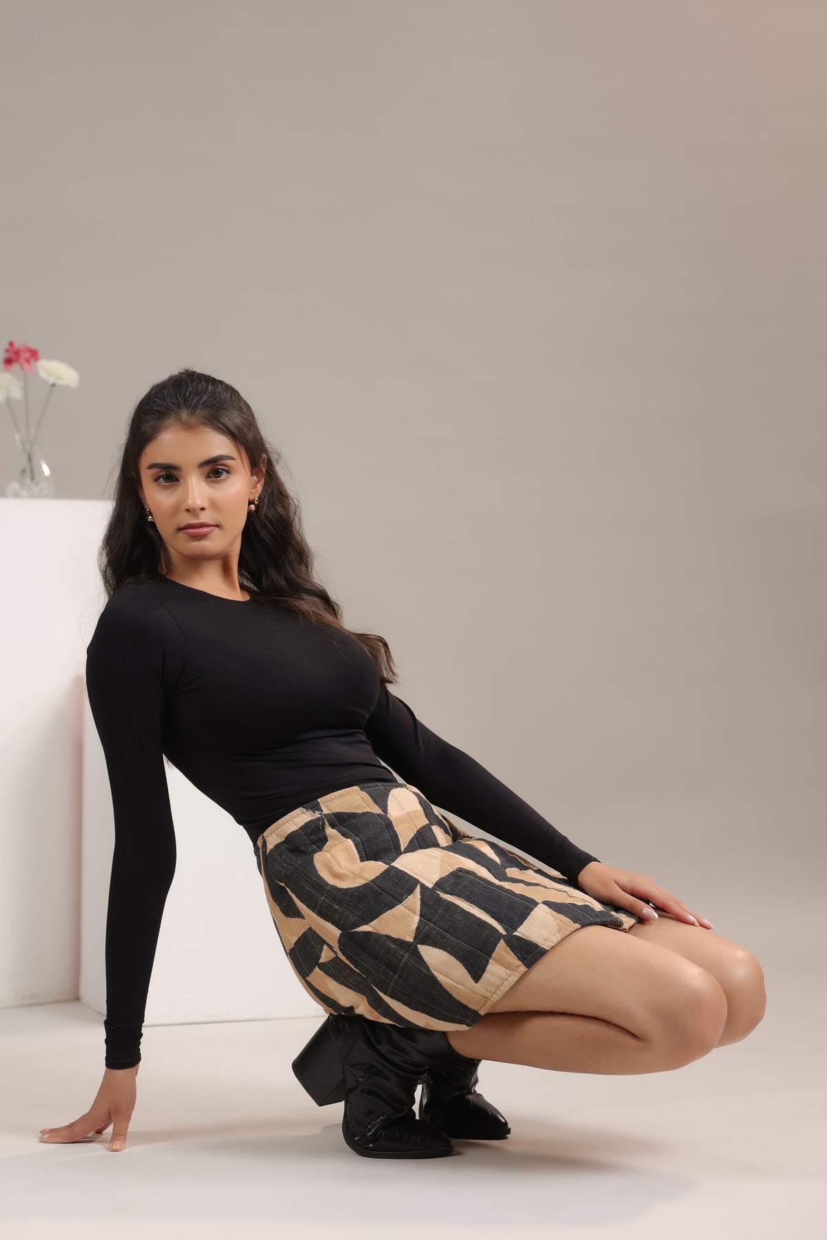 Buy Abstract Print Black & Beige Quilted Short Skirt – Stylish Casual Skirt for Women
