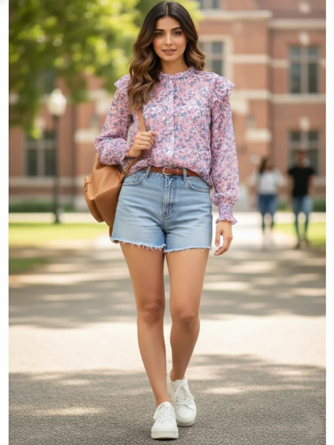 Add charm to your everyday style with this floral full-sleeves shirt. Designed with ruffle details and smocked cuffs, this shirt blends elegance and ease in every stitch. The lightweight chiffon fabric gives the shirt a soft, airy feel—perfect for staying comfortable all day. With its flattering silhouette and timeless shirt design, this piece transitions effortlessly from casual outings to more dressed-up looks. Whether paired with denim shorts or classic trousers, this shirt is sure to become a go-to favorite in your wardrobe. Embrace vintage charm with frill poet sleeves, adding a soft, romantic flow to your shirt.