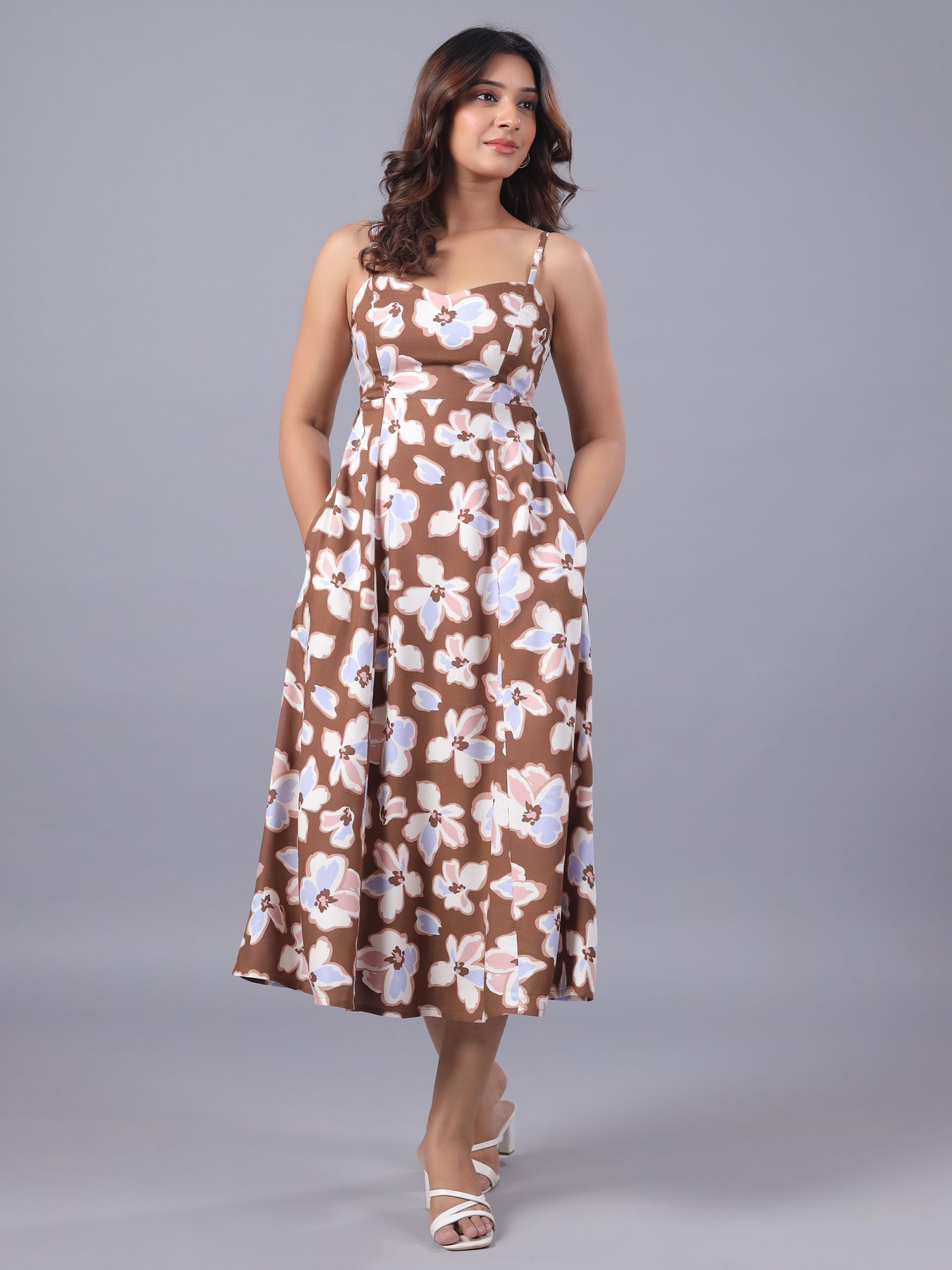 Embrace effortless elegance with our sleeveless viscose floral flare midi dress. This flattering midi dress features delicate straps, functional pockets, and a breezy feminine feel. Perfect for casual outings or daytime events, it's a comfortable, stylish summer dress. Achieve effortless elegance with our exquisite sleeveless midi dress.