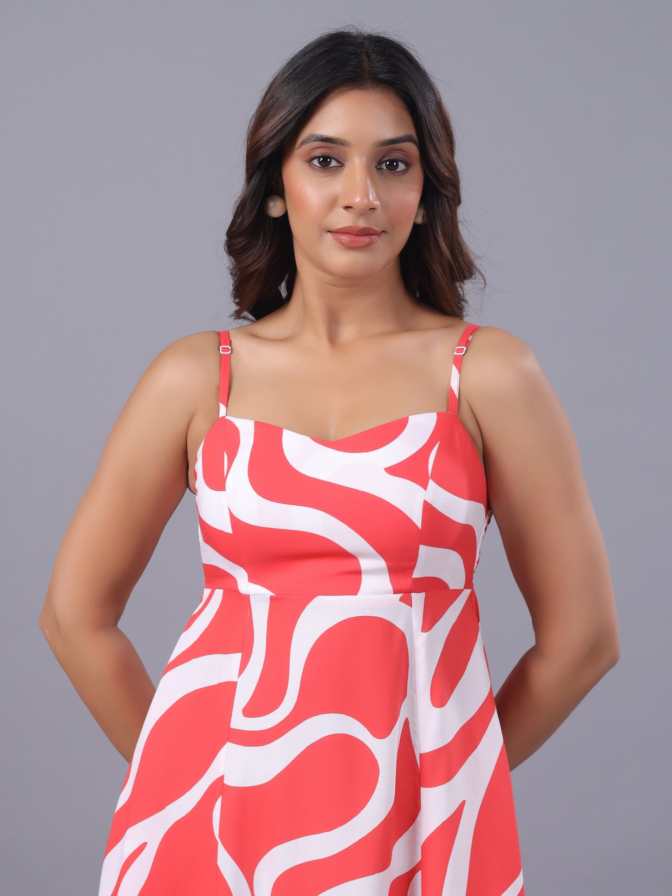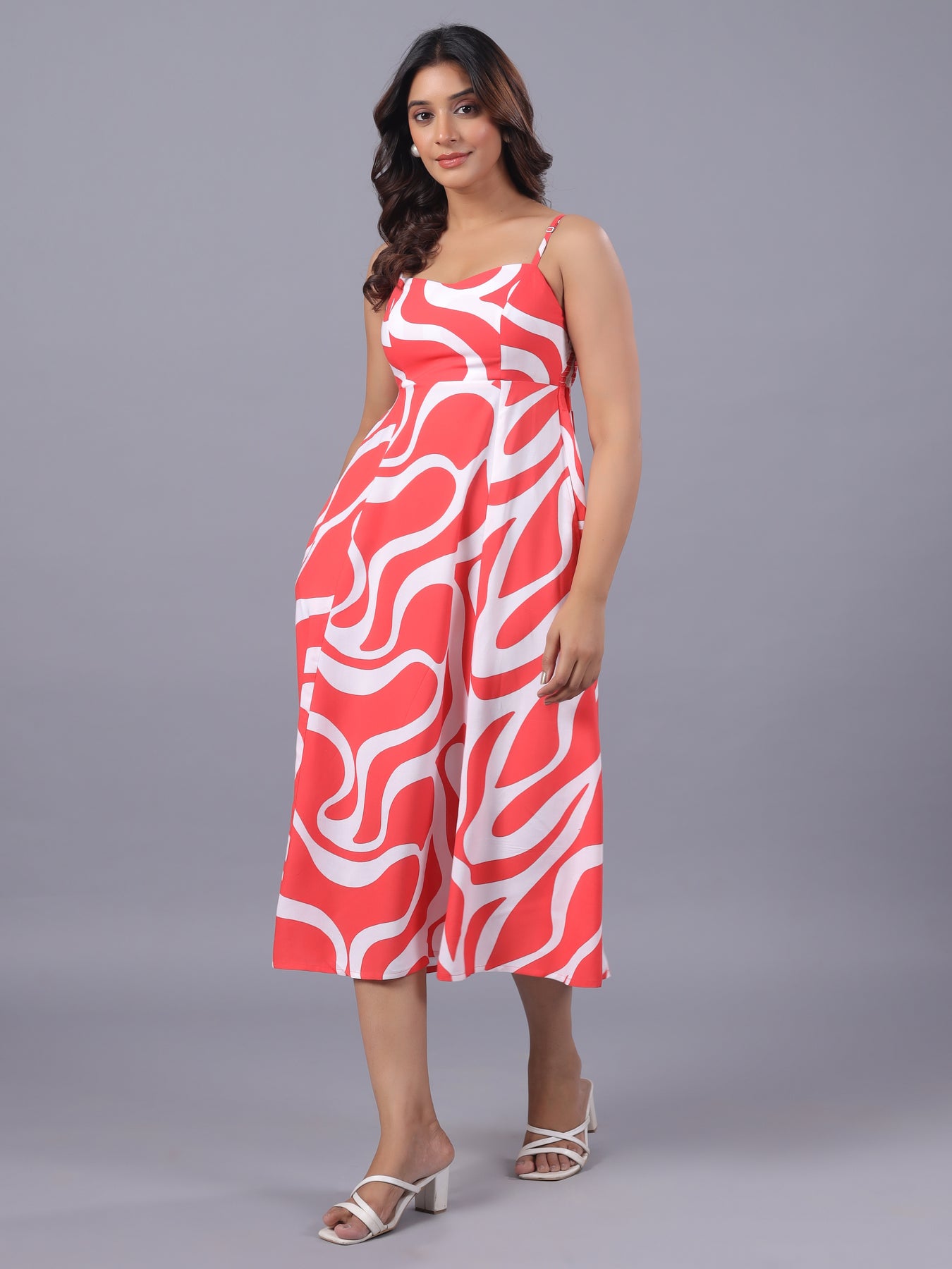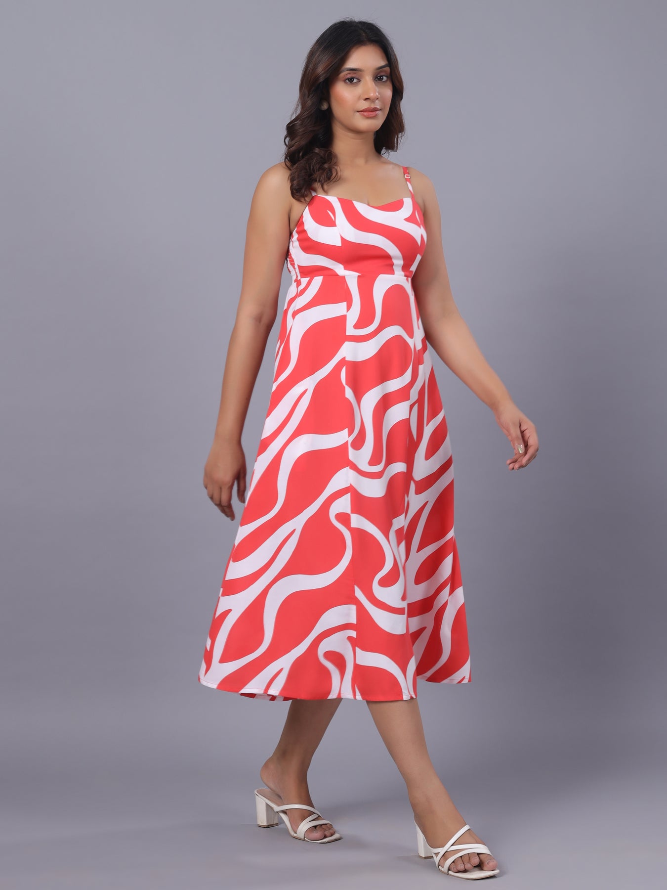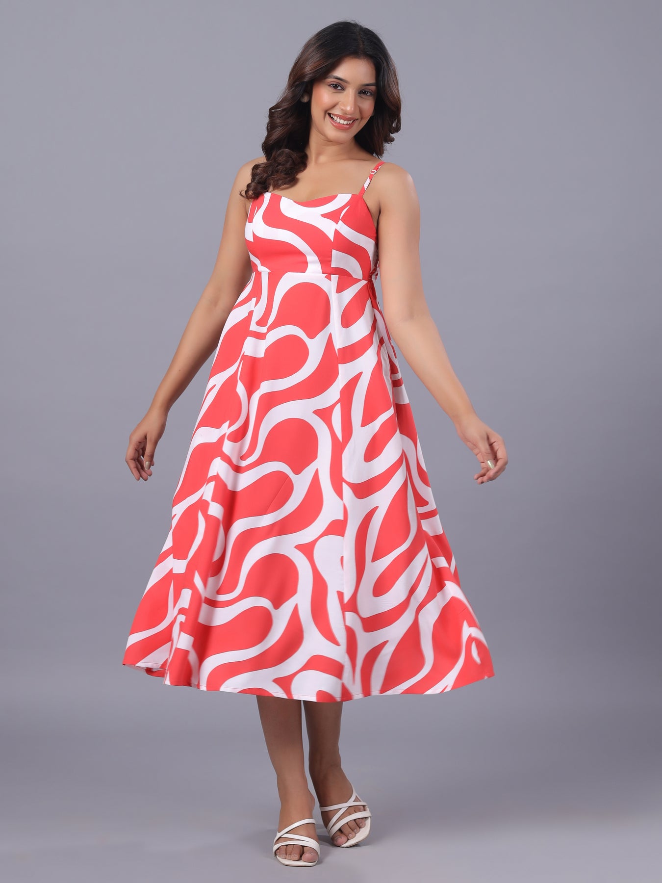 Our strappy midi dress is your ultimate resort wear essential, perfect for vacation or casual outings. This fit and flare midi, crafted from 100% viscose, features a striking abstract print dress that's both comfortable and stylish. It's the ideal summer dress for effortless elegance.